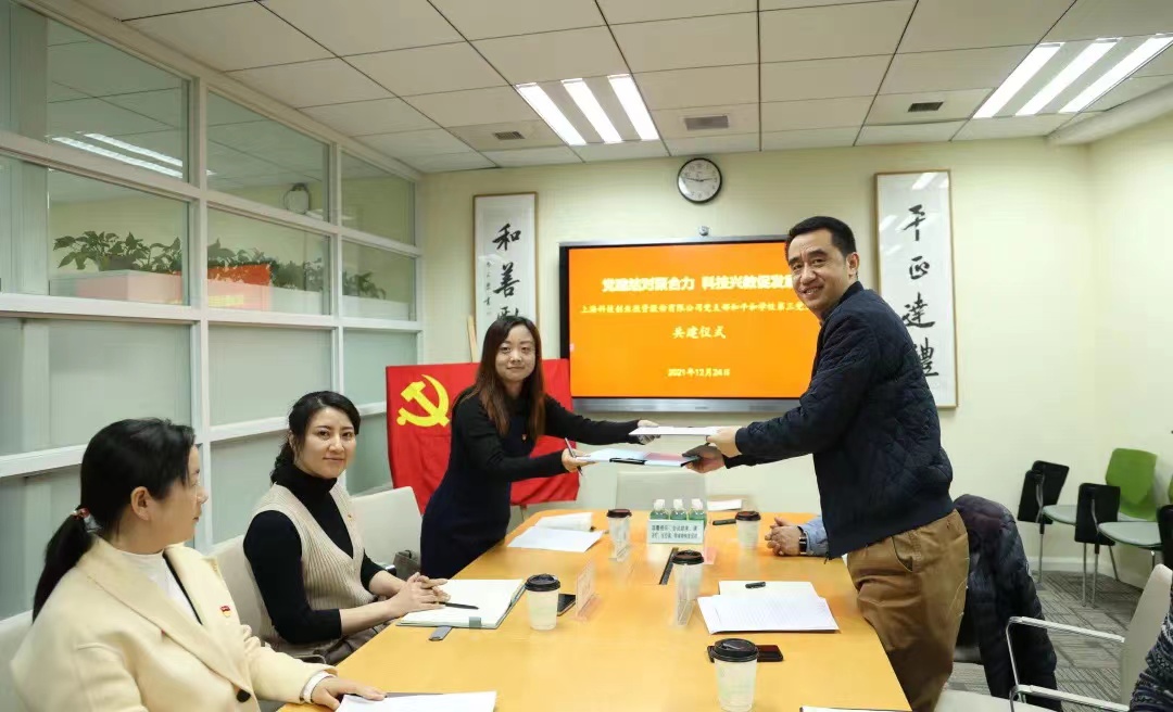 2021年12月24日,星空官方站网站-星空(中国)党支部与平和教育集团第三党支部举行主题为“党建结对聚合力,科技兴教促发展”的结对共建仪式。共话科教合作新前景。